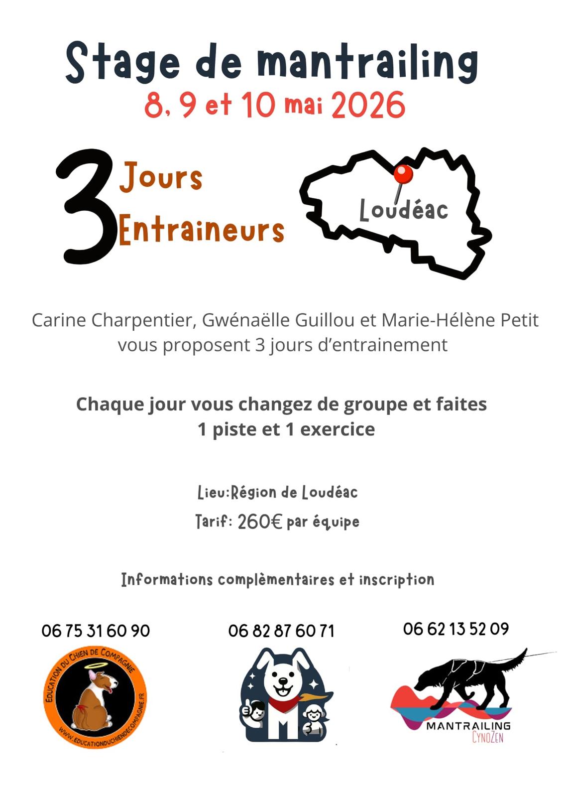 Suite au succès de la première édition 2025 de notre stage 3 jours 3 coachs à Loudéac, Marie-Hélène, Carine et moi vous proposons une seconde édition le WE du 8 mai.